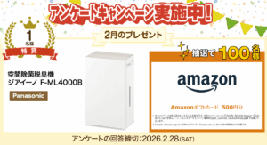 さらに、Panasonicの空間除菌脱臭機が当たる、2月限定のアンケートキャンペーンも同時開催中です。